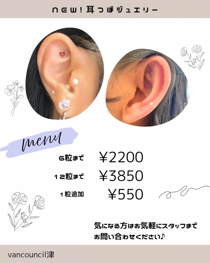 耳つぼジュエリーのメニューが始まりました!