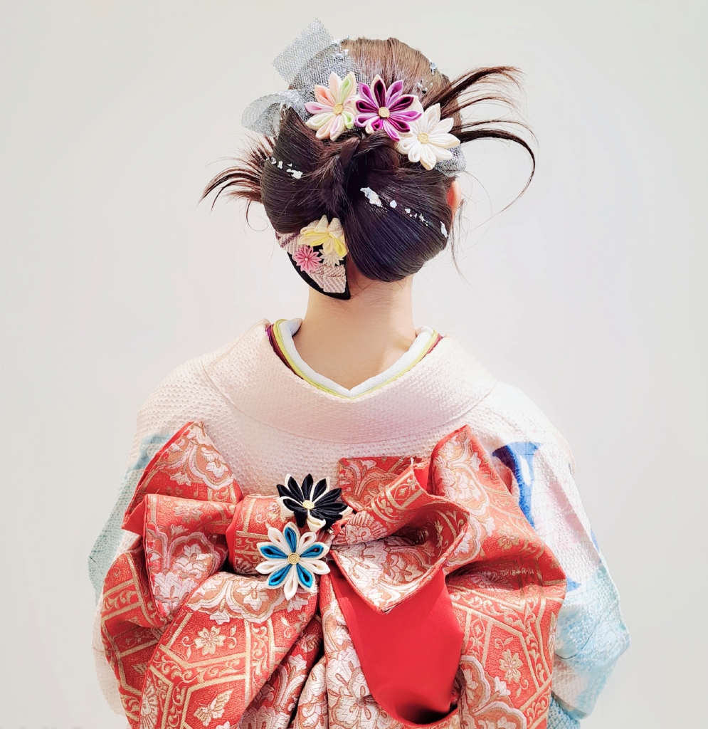 メイクは着物にあわせてピンクで可愛く、帯はヘアと同じリボンにしました!