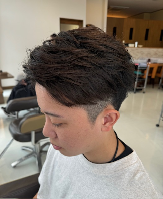 今日はメンズスタイルの紹介です。横と後ろをツーブロックにしてトップは流すようにスタイリングをした爽やかスタイルです!